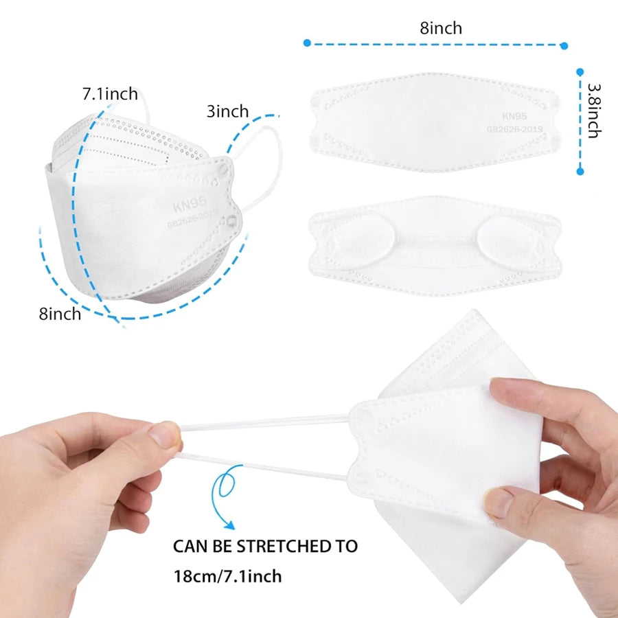 200Pcs Disposable Masks KN95 Fish-shaped 3D Mask Independent Package 4-layer Filter Dust-proof Protection Mask Black White