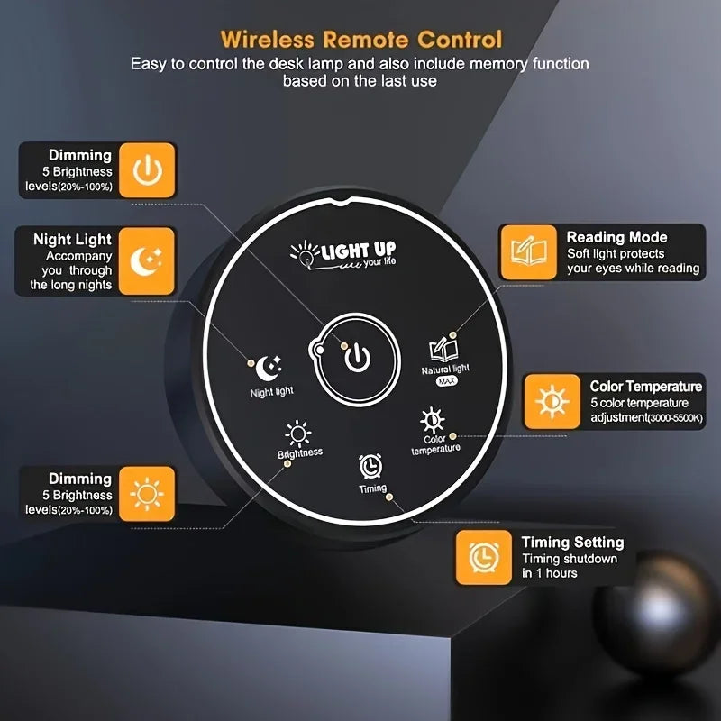 【Remote Control & Multifunction】This double head LED desk lamp is equipped with a wireless smart remote control, allowing you to choose the most suitable mode faster and more portable. It also owns two special functions (memory function and timing function ). The memory function can keep the desk lamp in the last used mode and brightness without resetting. The timer function can make the desk lamp turn off automatically after working for 1 hour, preventing us from overworking